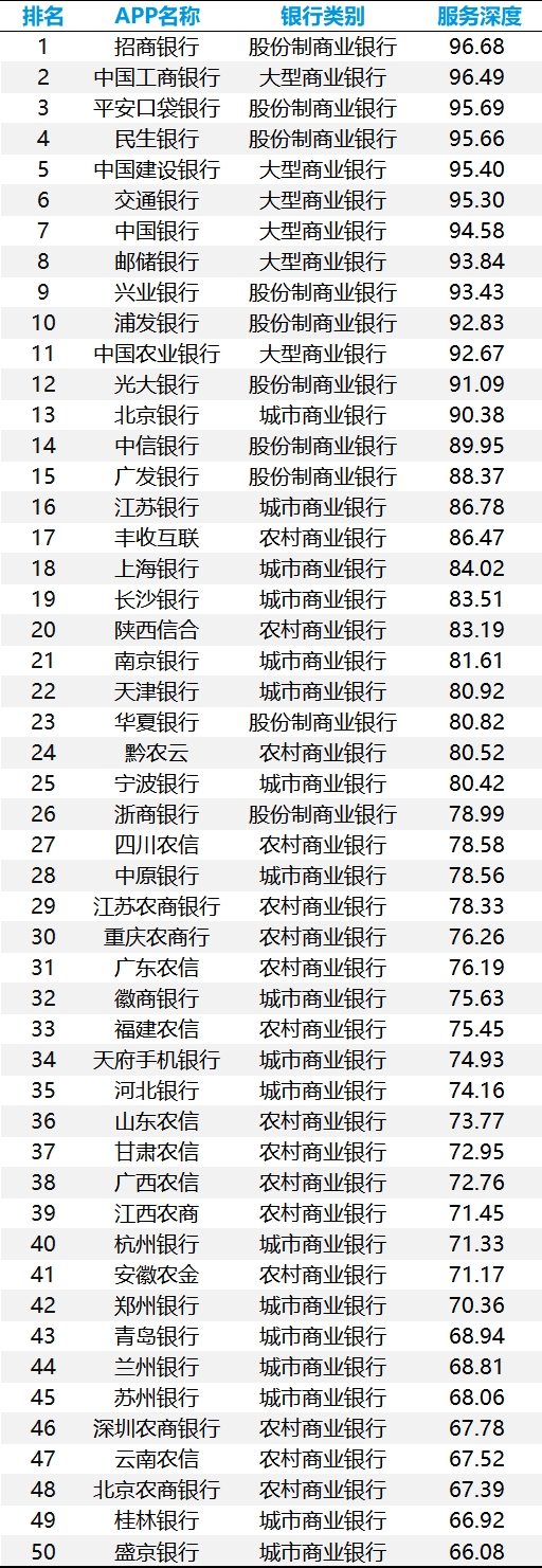 表 2025年手机银行数字化服务深度TOP50