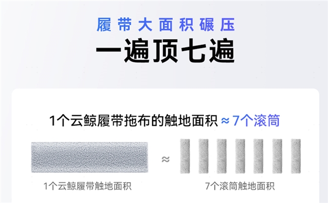 升级宽热强净履带拖地系统,高效率、0水渍、免维护