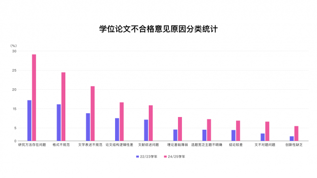 自教育部2020年实施《本科毕业论文(设计)抽检办法(试行)》以来,各高校持续面临论文质量管控与评估压力。抽检结果不仅关乎学生学业认定,也直接影响高校教学质量评价。当前从各省部分高校的抽检数据分析来看,论文质量问题已从形式规范延伸至学术深度与专业内涵,对过程管理与精准指导提出更高要求。