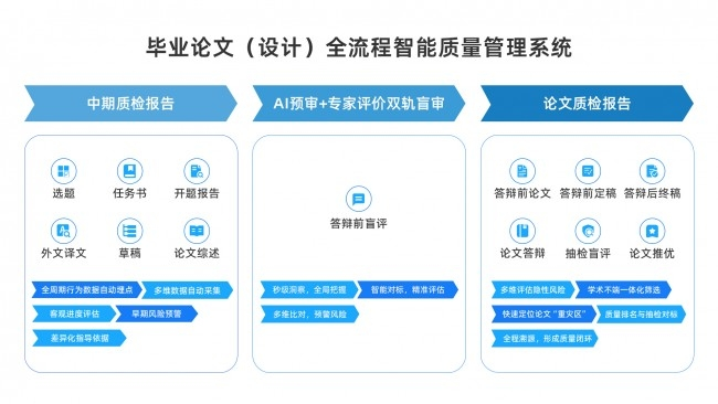 目前,该系统已在超过80%的合作高校中投入使用。数据显示,借助该系统贯穿全程的质量跟踪与干预机制,合作院系的论文抽检问题率平均下降75%,体现了智能化手段在质量保障中的显著作用。
