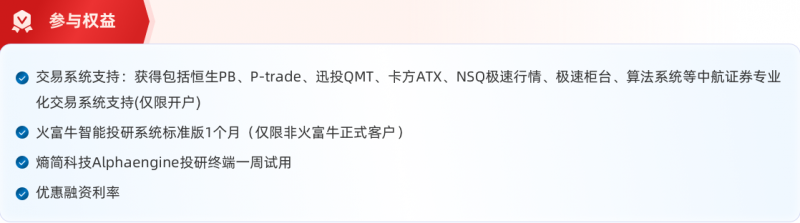 此外,所有参与活动私募机构均可享受交易系统支持、优惠融资利率及火富牛、熵简科技投研平台的试用权益,实现“参与即受益”。