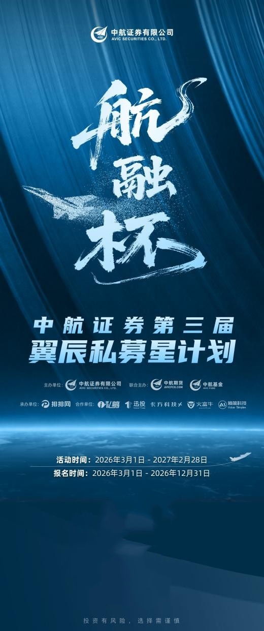 为与更多私募机构建立紧密、深入的合作关系,中航证券正式启动第三届“航融杯”-翼辰私募星计划。本届活动全新升级,中航证券联合多家实力机构共同打造开放式、多元化的私募发展与交流平台,致力于为私募机构提供更深层次、全方位的支持。