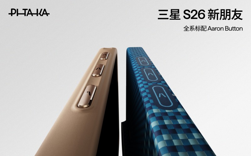 同期,PITAKA推出适配 Galaxy S26系列的全新芳纶纤维手机壳,带来芳纶超薄款、芳纶防摔款两大系列,涵盖「日落月升」、「山与星河」、「浮光跃金」以及黑灰等多款经典花色,并搭载业内首款全自研快捷按键——Aaron Button,让创意和效率一键直达。