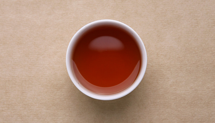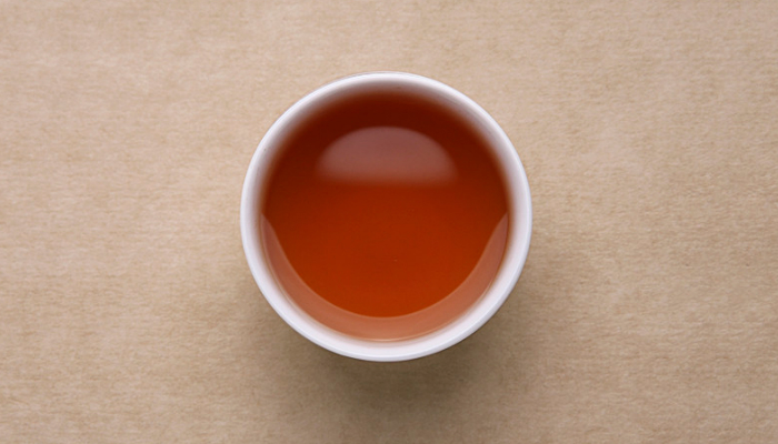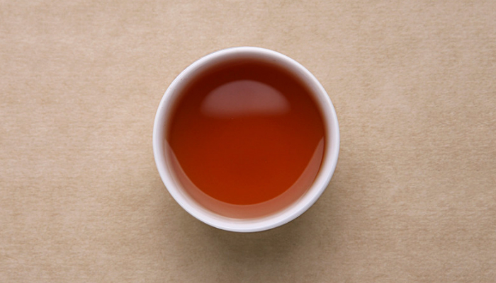 汤色呈深琥珀色,明亮度高。花香高扬,带入汤内,汤较厚,味甘甜,饮后有回甘生津,口齿留香。