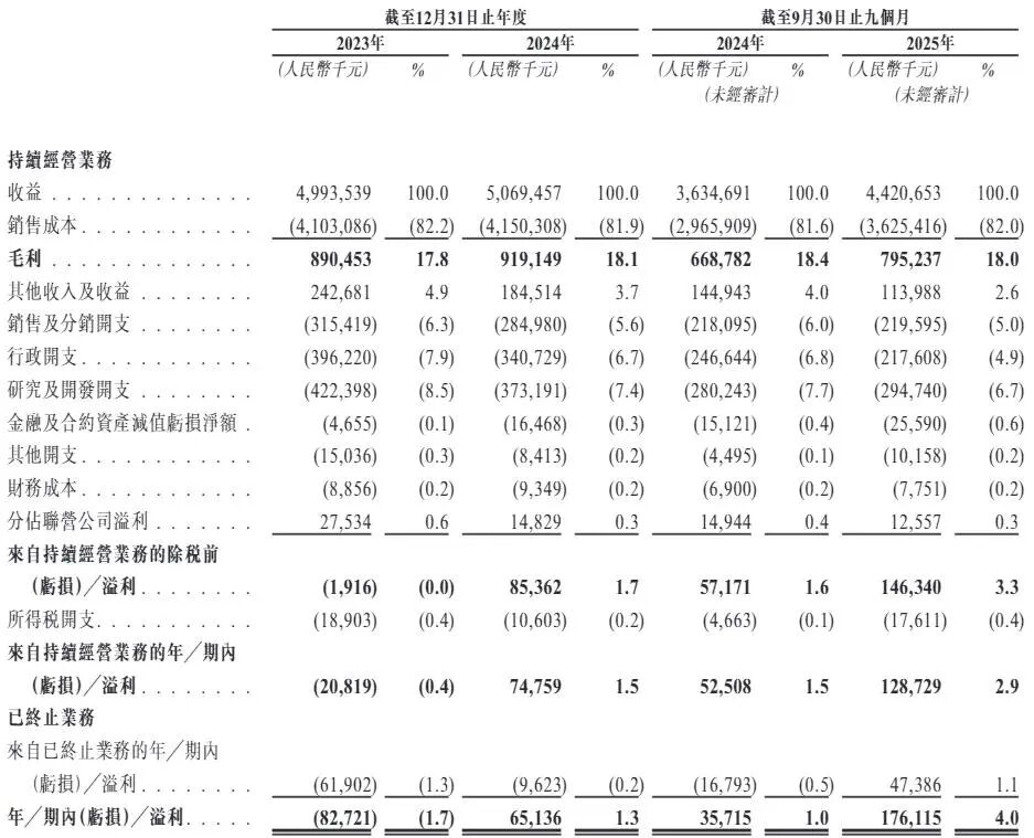 在两大业务的共同发力下,卡奥斯2023年、2024年及2025年前9个月分别实现收入49.94亿元、50.69亿元和44.21亿元,分别实现期内利润-0.83亿元、0.65亿元和1.76亿元。