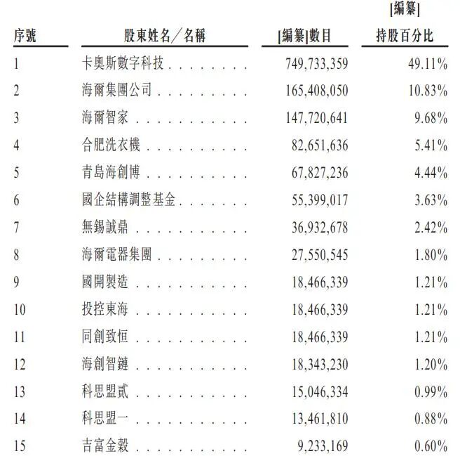 《招股书》显示,卡奥斯的前身是海尔集团于2017年4月孵化成立的海尔工业控股有限公司(下称“海尔工业”),由海尔集团旗下首家上市平台海尔智家(600690.SH,6690.HK)全资持有。