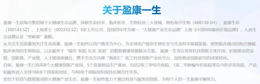 至此,作为海尔集团旗下的大健康生态品牌,盈康一生深耕生命科学、临床医学、生物科技三大领域,成功拥有海尔生物、盈康生命和上海莱士这3家上市公司。