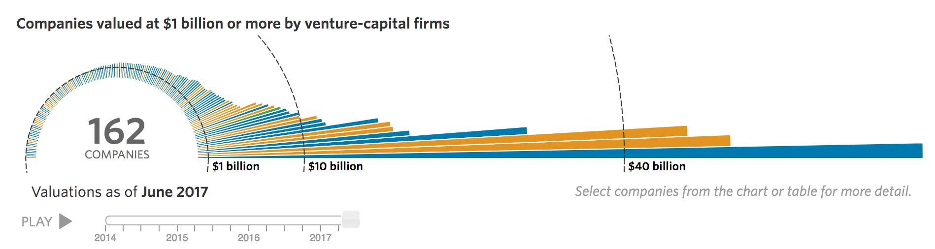 哈佛商业评论的信息是2014年4月份的统计。当时未上市公司的独角兽仅有58家,但现在则增加到了162家,所以数据会有所偏差。有兴趣的朋友可以到WSJ的网站寻找“The Billion Dollar Startup Club”查看。