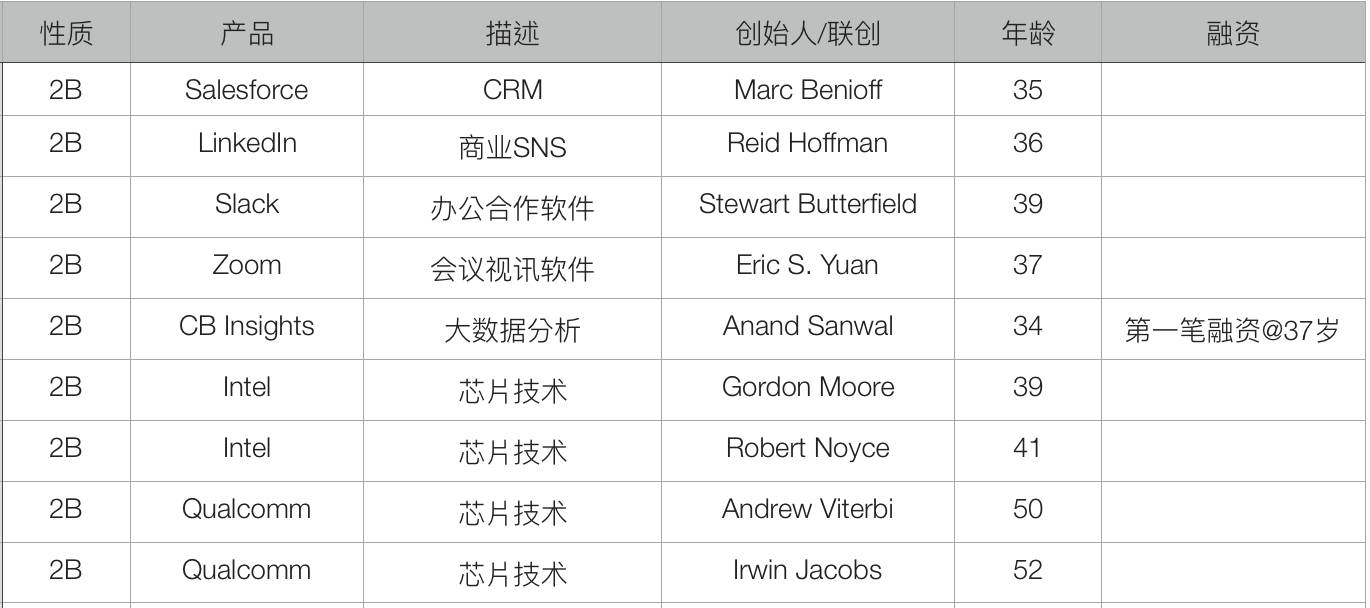 2B公司创始人年纪都比较大的原因,从上面这几家公司的商业模式中就可以找到答案。