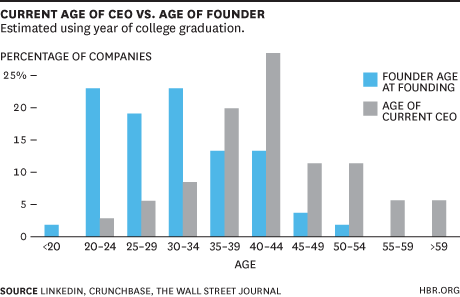 的确35岁之前的创业者远多于35岁之后的创业者,但随着公司的成长,CEO不一定是创始人或创始团队。