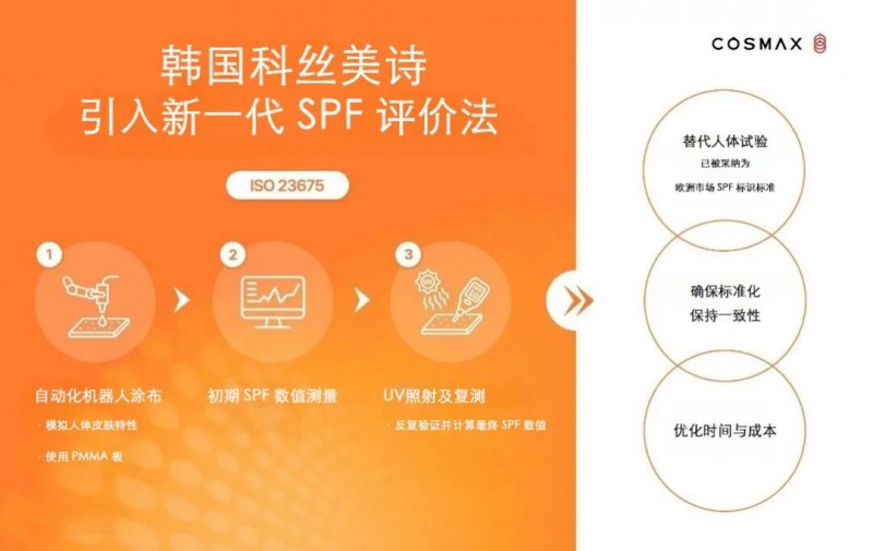 目前,韩国科丝美诗COSMAX已宣布率先在业内完成该标准的技术部署,为防晒产品前期 SPF 验证提供了更可控、可重复的体外测试参考结果。