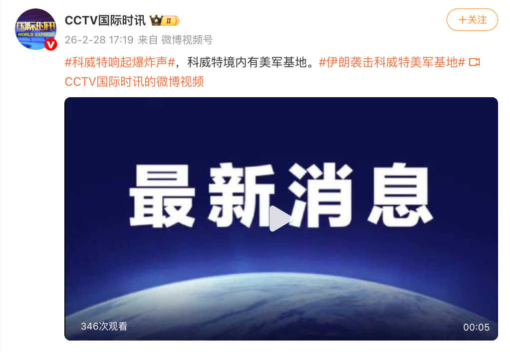 科威特响起爆炸声,科威特境内有美军基地。(CCTV国际时讯)