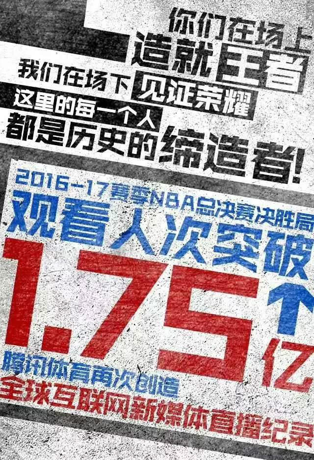 随着勇士4-1战胜骑士赢下2017年总冠军,腾讯体育获得NBA新媒体全场次赛事直播版权的第二个赛季也宣告落幕。这NBA总决赛最后一场,腾讯体育上的观看人次达到1.75亿,既为腾讯体育NBA大直播时代第二季完结画上句号,也为初夏时长近两个月的“冠军季”营销活动收官。
