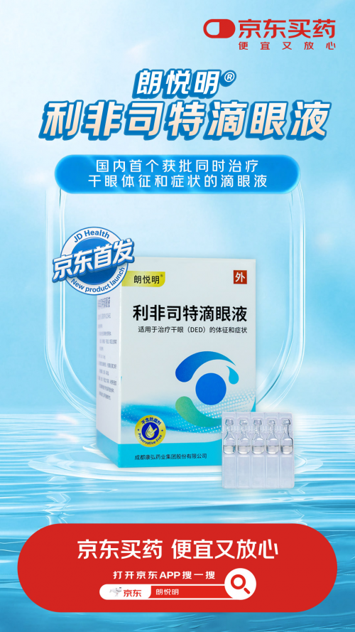 2月28日,康弘药业旗下干眼治疗药物5%利非司特滴眼液(商品名:朗悦明®),在京东健康全网独家首发。京东健康将依托“新特药全网首发第一站”的能力优势,持续引入此类创新药物,让更多患者能够便捷、及时地用上好药。