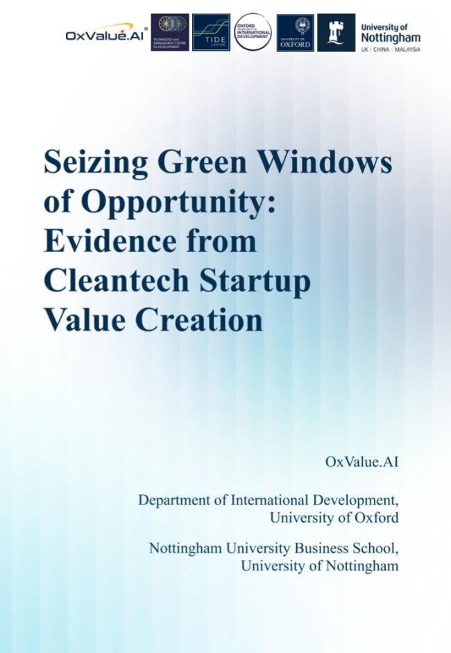 近日,牛津智能联合牛津大学国际发展学院、诺丁汉大学商学院等机构共同发布白皮书《把握绿色机遇窗口:清洁技术初创企业价值创造研究》。该研究首次系统分析全球清洁技术创新的价值分布与生成机制,为政策制定者、投资者和创新者识别绿色转型中的战略机遇提供重要参考。