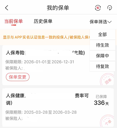 作为综合金融保险服务的重要载体,保险公司自有APP仍是用户查询保单的核心选择,其中中国人保APP的优化升级颇具代表性。记者了解到,该APP依托集团一体化服务能力,实现车险、财险、寿险、健康险等全品类保单一站查询,用户完成实名认证后,首页“我的保单”入口可快速呈现名下全部人保保单,支持按险种筛选、保单号检索,保障期限、保额、缴费状态等关键信息一目了然,电子保单可直接下载,适配车辆年检、理赔核验等各类场景。