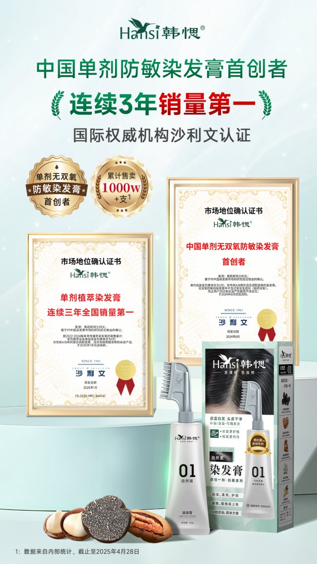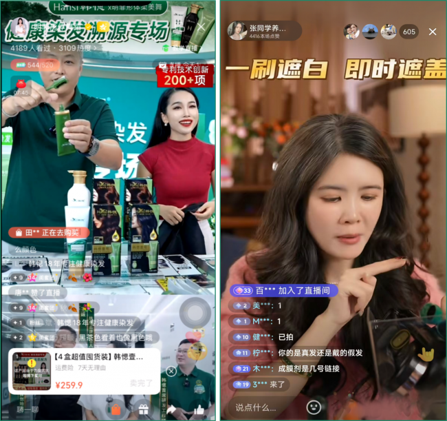自2023年起,韩愢开启视频号运营,结合主爆款韩愢果染膏,以“居家染发”为场景,构建内容生态。韩愢果染膏是韩愢品牌首创的单剂无双氧染发膏,2021年上市,在直播电商平台迎来爆发,并获得国际权威机构沙利文“单剂染发膏首创者/连续3年销量第一的”市场地位认证。将爆款单品引入视频号,通过创始人IP及直播场景创新,深度触达视频号用户,构建从心智影响到销售转化的高效闭环。