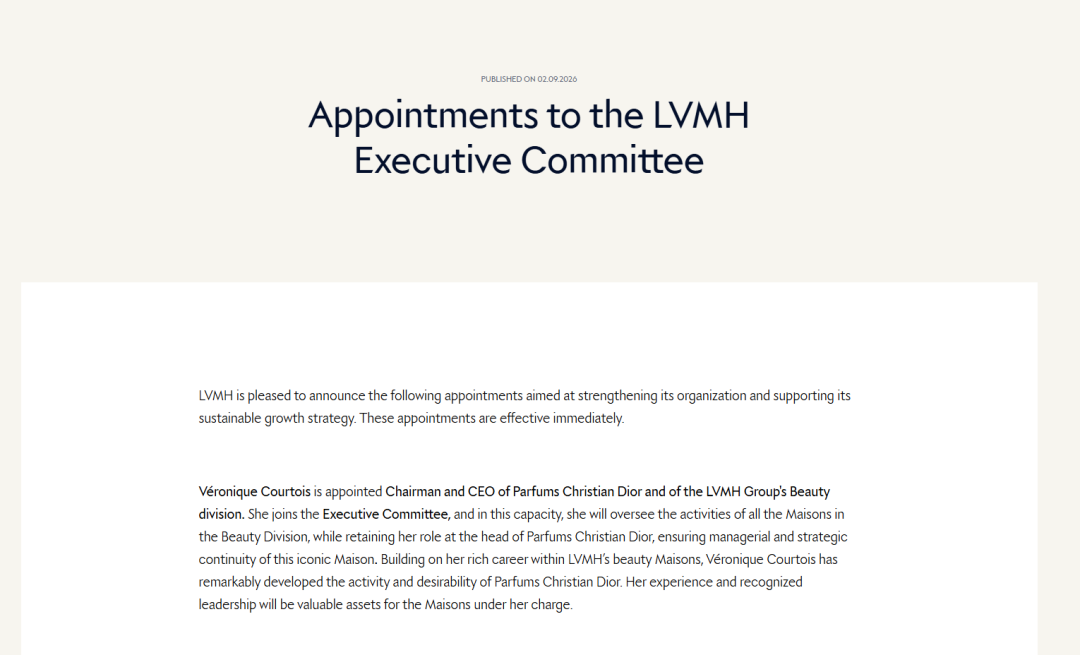根据LVMH官方任命,Courtois将担任迪奥香水与美妆(Parfums Christian Dior)及LVMH美妆事业部主席兼首席执行官,并进入集团执行委员会。