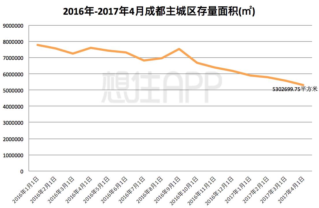 从2016年开始,成都主城区新房住宅库存量就一直处于下降的状态。