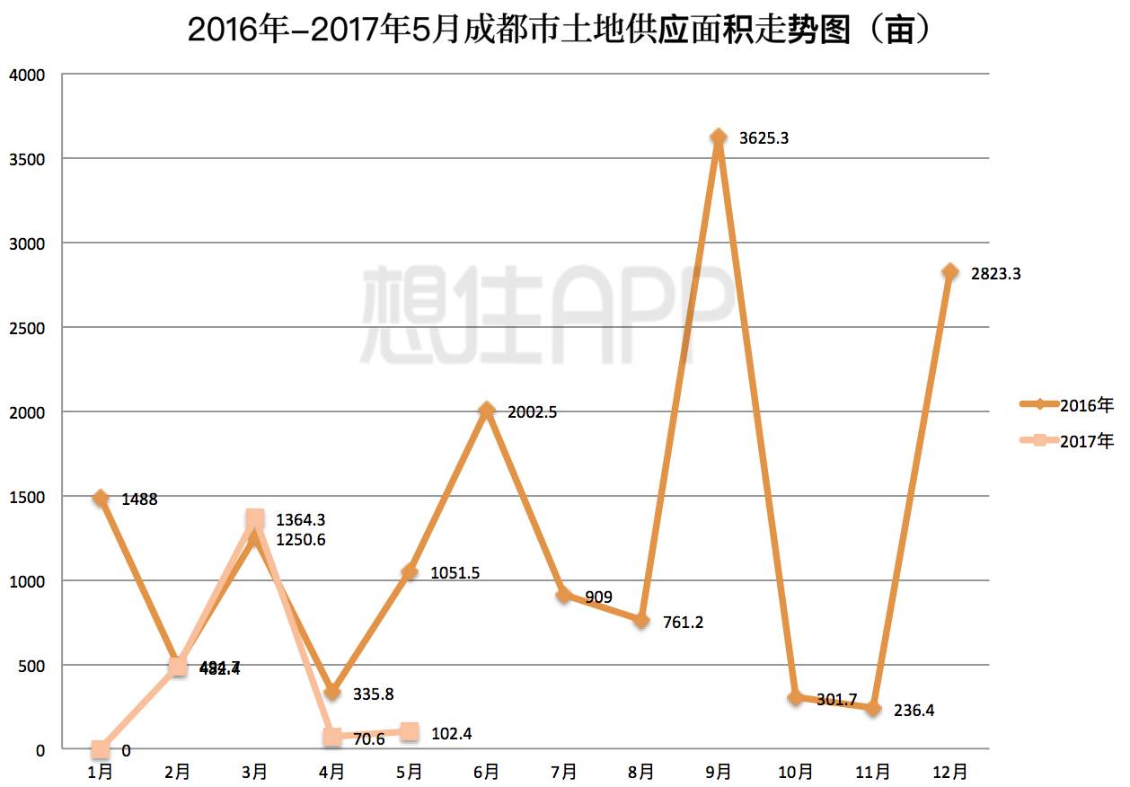 另外,据中成房业数据,4月份大成都新增供应6宗,合计推出面积102.4亩,处于低位,其中挂牌5宗,拍卖1宗。5月推出土地以商业为主,共计5宗,合计面积79.3亩,住宅1宗,面积23.09亩。成都中心城区全年住宅用地185公顷(约2775亩),何时放量?半年已过,是不是已经到了拐点呢?