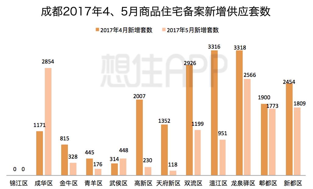 另外,除了召开产业研讨会和放出出让地块信息,成华区近期的动作非常积极。从成都的主城区和近郊近两个月的新增供应房源来看,成华区也是唯一持续增长且涨幅爆棚的区域。