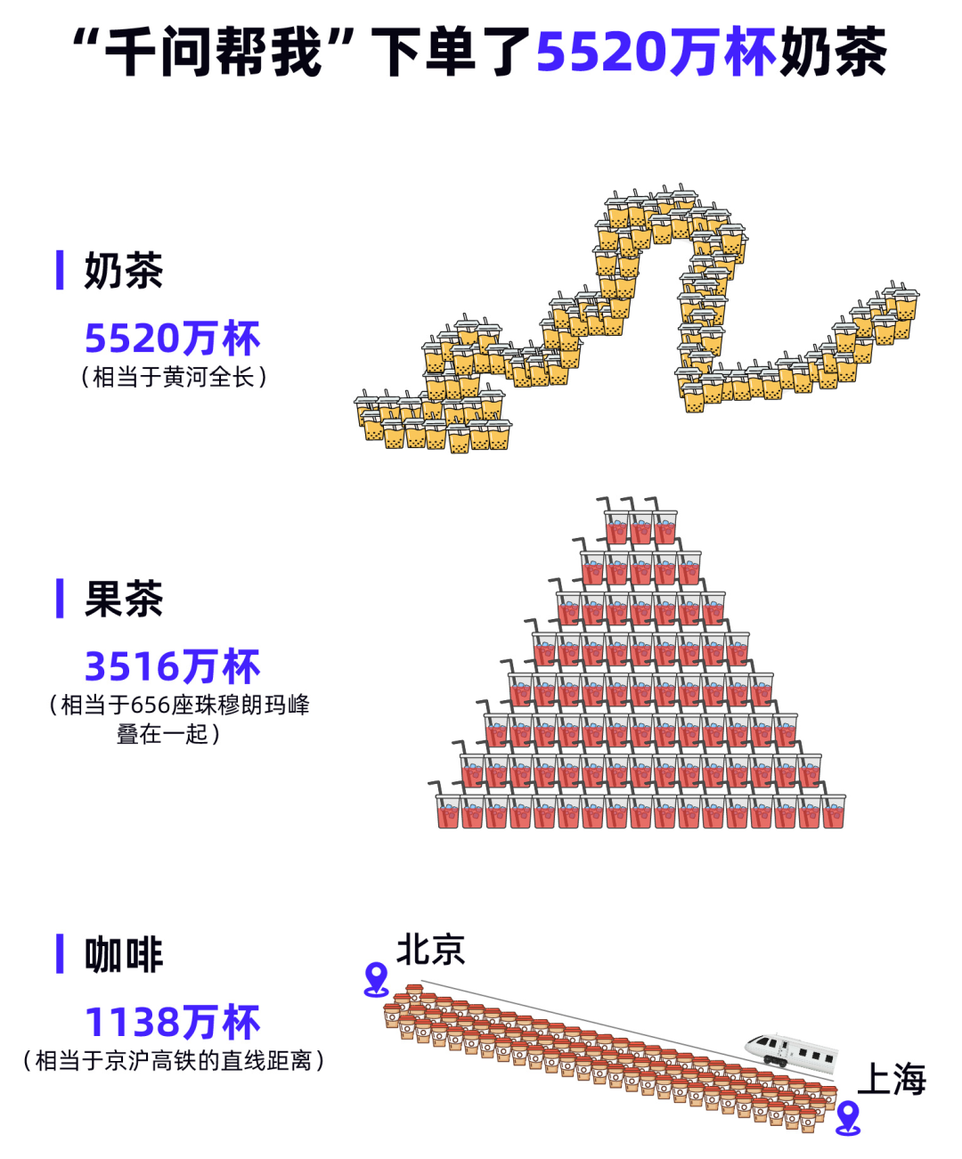 千问则走了一条完全不同的路:30亿红包砸下去,不跟你讲技术,就讲生活。点奶茶、订车票、买年货,AI被塞进每一个日常缝隙里,“一句话下单”完成了近2亿次操作,光奶茶就免单5520万杯,购买鸡蛋超过3000吨,增幅940%不是白来的,直接让AI入侵14亿用户的消费习惯。阿里赌的是“实用化”,目前看,赌对了。