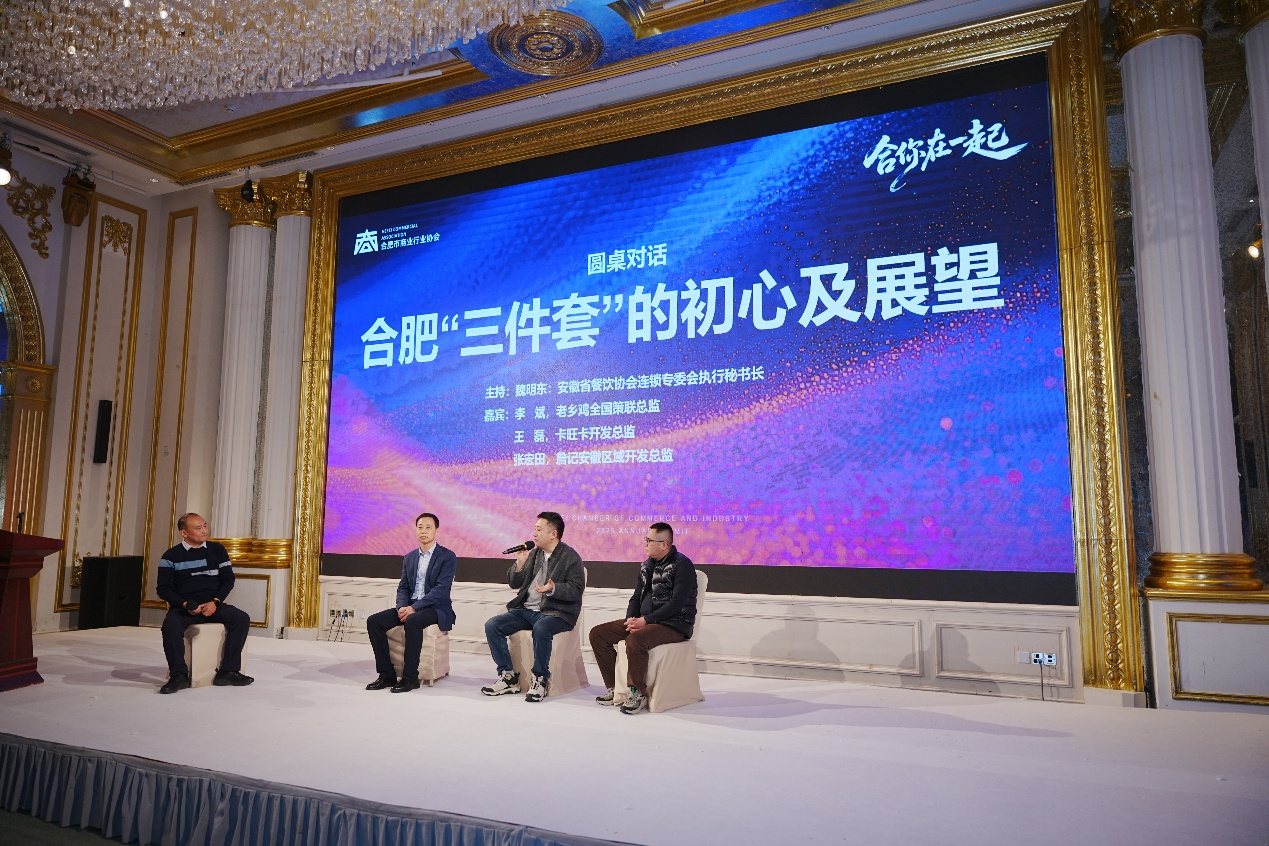 第二场对话以《合肥三件套的初心和发展》为主题,由省餐饮协会连锁专委会秘书长魏明东主持,老乡鸡全国策联总监李斌,卡旺卡开发总监王磊,詹记安徽区域开发总监张宏田,分别阐述了各自品牌的创始理念、发展策略和2026年重点规划。将与购物中心、商业街区、文创园区携手共进,放大安徽自主品牌声量。嘉宾们纷纷期待合肥本土品牌涌现更多的“三驾马车、四大金刚、五朵金花”。