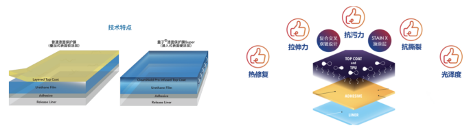 ·显著提升了漆面保护膜的综合性能,包括拉伸强度、抗污能力、抗撕裂性、表面光泽度以及热修复功能。