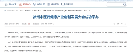 2023年12月16日,第十八届亚太高血压学术会议期间,国产ARNI一心坦®的全国上市发布会在上海隆重举行。国内心血管领域的领军专家齐聚一堂,共同见证了这一国产创新药物的重要时刻。并且复星医药为一心坦®启动了8项真实世界临床研究,在全国100家医疗中心同步开展,为心血管疾病的科研创新提供重要数据支持。这些研究不仅验证了药物在实际临床环境中的疗效与安全性,也为优化高血压和心力衰竭的治疗方案提供了循证医学依据。2025年6月,徐州市医药健康产业创新发展大会成功举办,复星万邦医药等150余家单位参与,共同探讨医药健康产业的创新与发展。