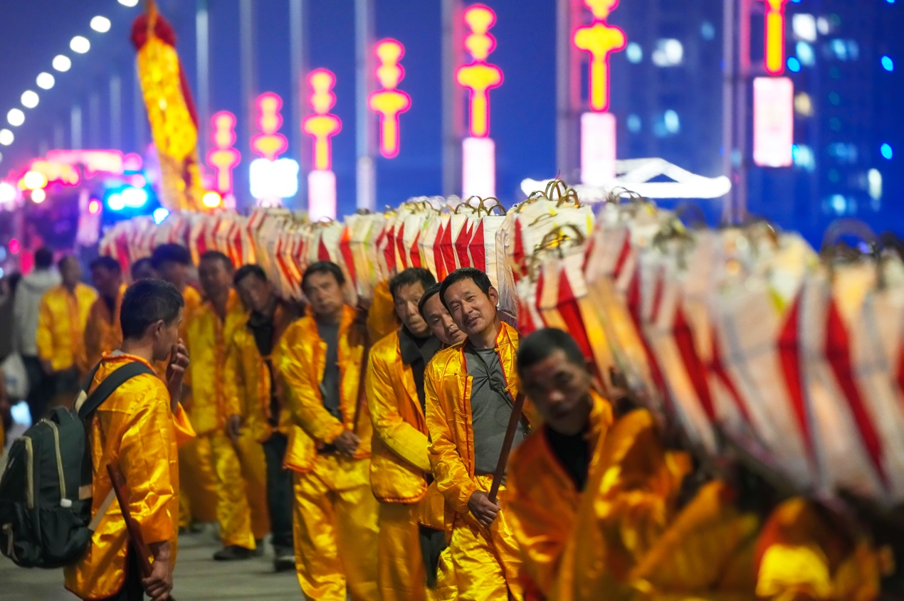 科技赋能,焕新非遗表达语言。河面金龙逐浪、岸上游龙蜿蜒、空中飞屏呈祥,“水陆空”三龙共舞的震撼场景,成为本届艺术季最大亮点。传统板板龙灯与现代光影、数字技术深度融合,突破静态展示局限,打造可看、可玩、可体验的复合文旅场景。非遗巡游、民俗市集、光影秀场、国潮打卡等多元活动同步上线,以年轻化、潮流化表达圈粉新生代,让非遗在创新中绽放新彩。