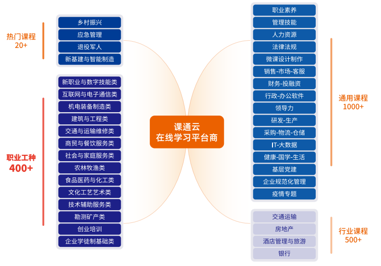 课通天下精准把握政策导向,在原有400+ 职业技能线上课程体系基础上,第一时间启动新职业(例如:人工智能训练师、服务机器人应用技术员、办公软件应用(DEEPSEEK 方向)、无人机测绘操控员、婴幼儿发展引导员等)课程研发,依托AI工具实现新职业课程极速开发、精准对标国标,可适配技工院校、职培机构、企业职工技能提升、专业技术人员继续教育等多元场景,全方位满足标准化、高质量、快迭代的职业技能培训需求。