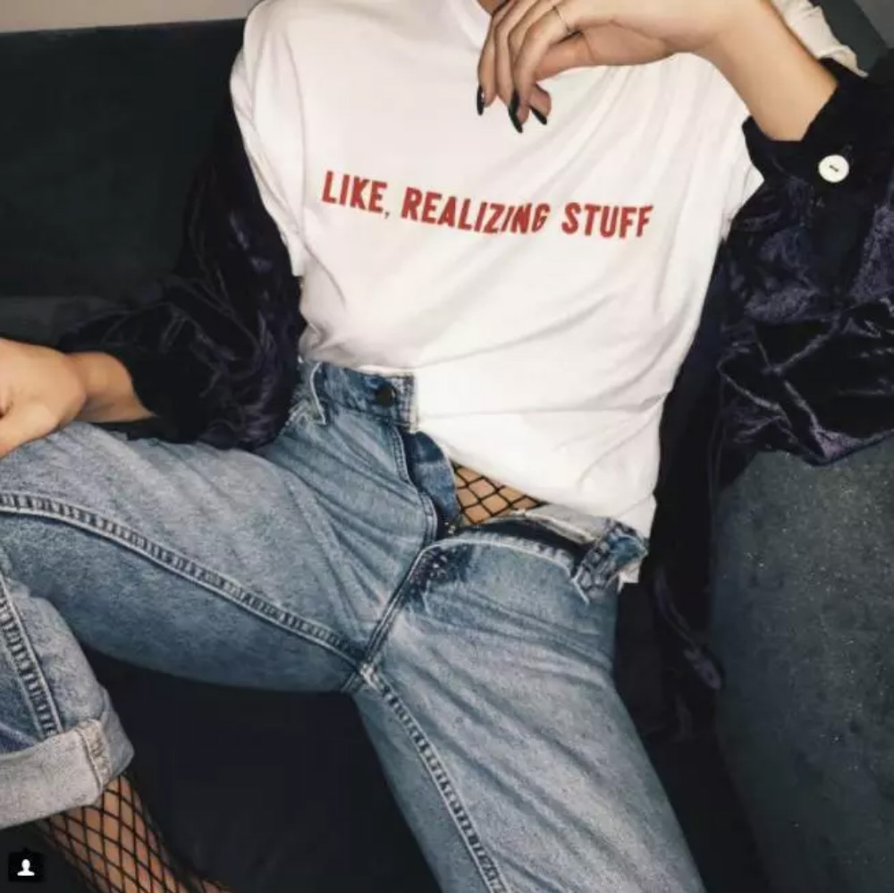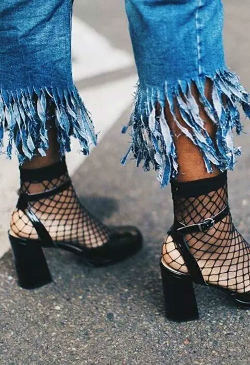 但是谁也没想到在今年,渔网居然成为了Instagram上的网红单品。而到了2017年,渔网衣着的标配必须是牛仔裤。与十多年前朋克女孩不同的是,现在流行的穿法似乎还要奔放一点:高腰上衣和低腰裤的中间,留给了渔网袜的“裤头”。