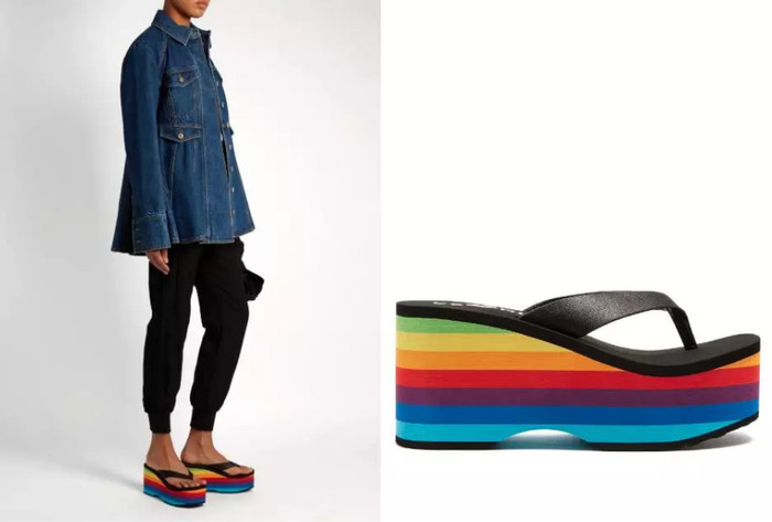 矮子乐松糕鞋底和沙滩专属人字拖,最初也许是让不够高的少男少女也能自信地去沙滩玩耍(误),但却在本世纪初变成了一种时尚受害者威力巨大的可怕单品。最可怕的地方在于,你可以用它搭配任何造型,无论是松松垮垮的工装裤、牛仔裤、还是材料貌似窗帘的连衣裙,厚底人字拖都显得那么合情合理?毕竟明星还穿去走过红毯。