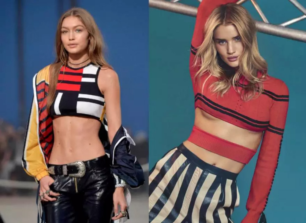 ▲ 左:Gigi Hadid为自己的Tommy X Gigi 2017春夏站台;右:Rosie Huntington-Whiteley in Elle UK 2017 February
