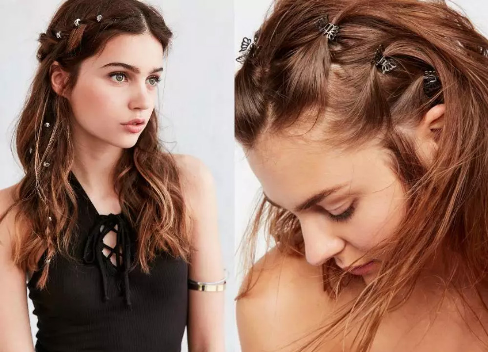 最近,我们又在秀场的模特头上和时尚品牌的货架上看到了这些好久不见的塑料发饰。2017年的小发夹有了些波西米亚气质,瞬间连接起了两个时代的少女: