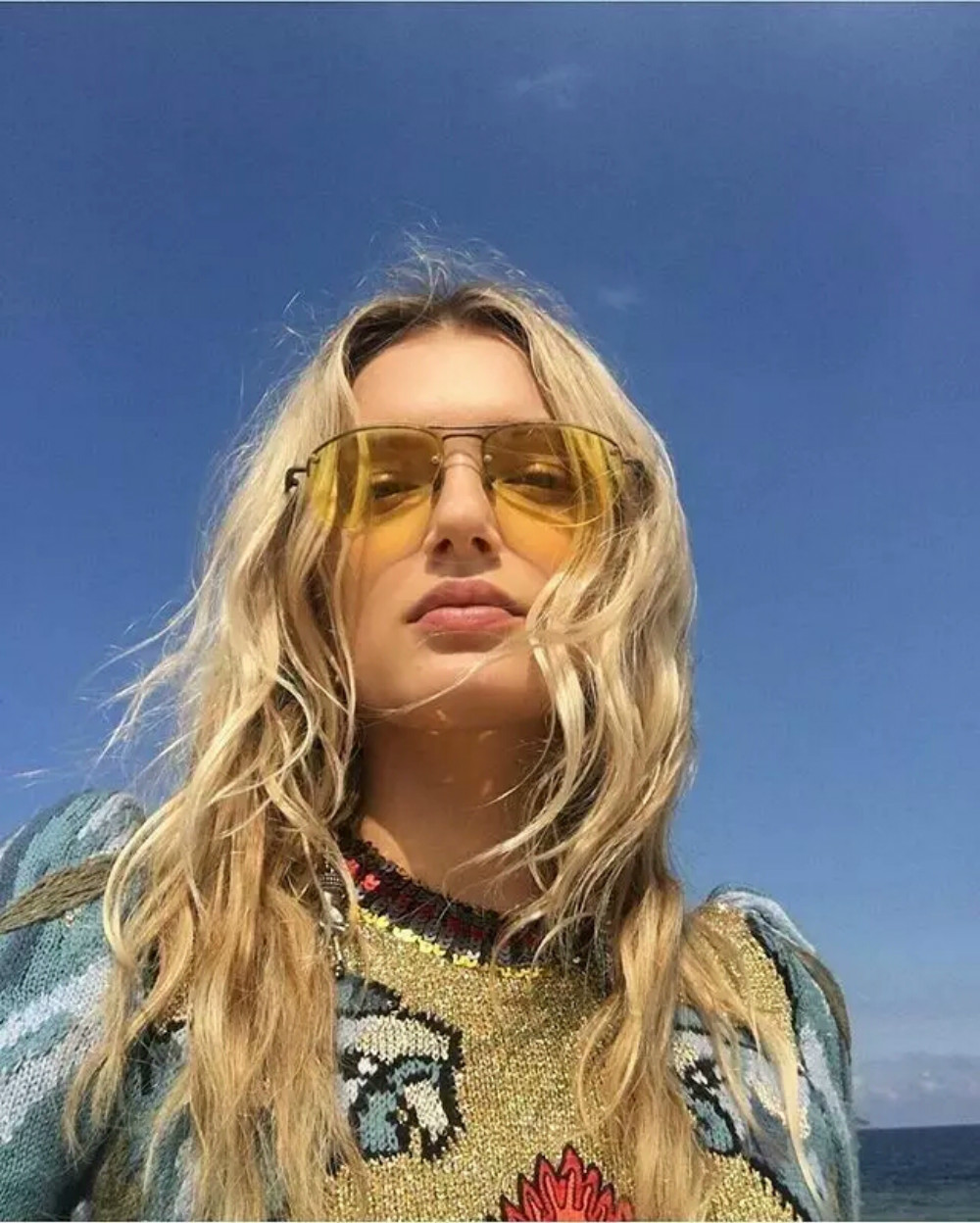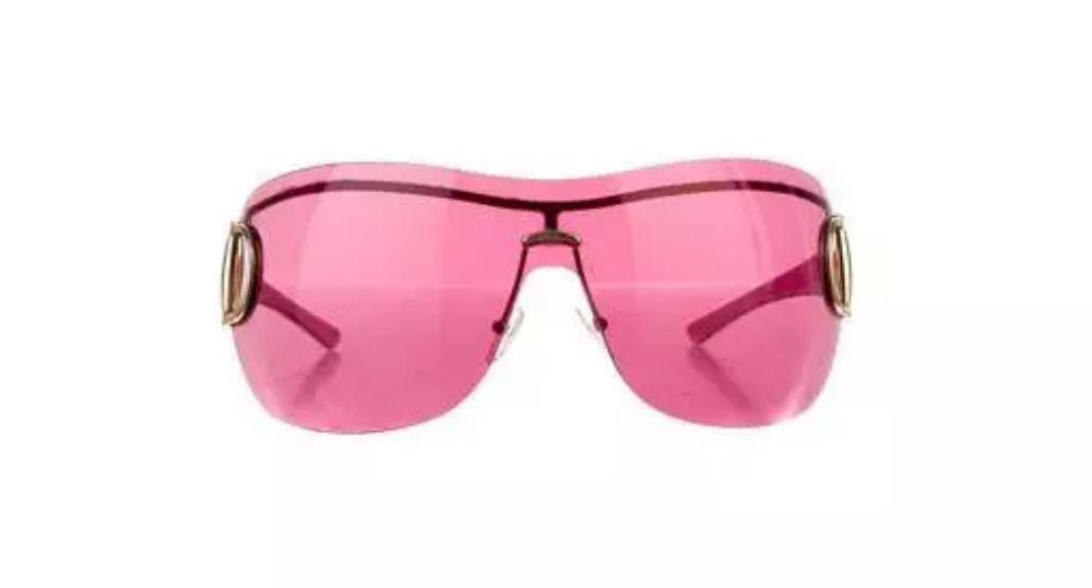 00年代流行的这种眼镜,特征也很明显:1)通常为红色系的大面积彩色镜片,浅到几乎阻挡不了日光 2)镜腿太阳穴部位的宝石装饰,比如特别大的“双C”或者“CD”。可是看了一眼今年的眼镜广告,浅色太阳镜又变得无比流行,并且跟上一个年代相比,在华丽浮夸上甚至有过之无不及。