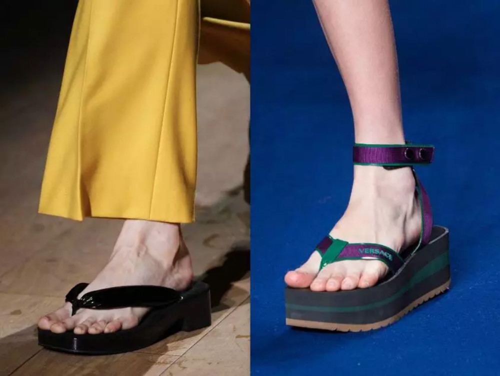 然而在今年春夏秀场上,我们吃惊地发现了厚底人字拖的抢眼身影。难道厚底人字拖又要再次进入高级时尚了吗?而在源自“Spice Girls”的怀旧时尚井喷松糕底凉鞋流行了多季之后,它以一个最原始的形态回归主流好像也只是时间问题了,尤其是当你看到从精品百货到快时尚品牌都在大张旗鼓售卖这款单品时。