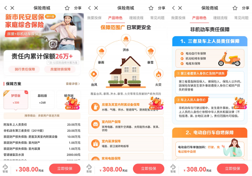 如今,头部险企纷纷推出适配打工人的综合保障方案,以中国人保APP上的“新市民安居保家庭综合保险(骑行版)”为例,记者进行了实测体验: