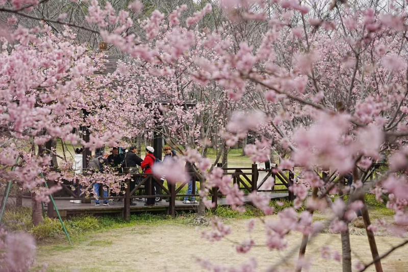 界面新闻3月3日获悉,2026上海樱花节将于3月9日至4月4日在顾村公园举行。目前园内的寒樱、钟华樱、牡丹樱已进入盛花期,早樱主力品种河津樱、椿寒樱正处于最佳观赏期,深受游客喜爱的大渔樱也已逐步盛开。