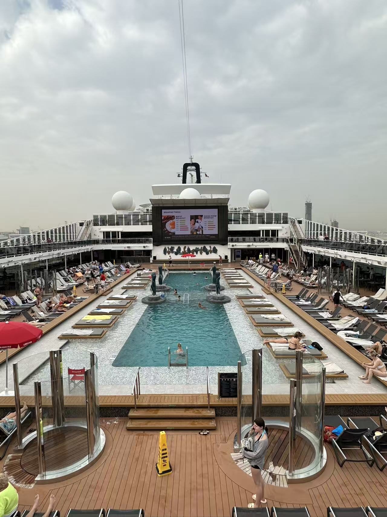 于此同时,领队们每日会替团队游客预约一些船上的娱乐项目,助其放松心情,鼓励游客去看船上的剧院演出以及乐队表演。“考虑到中老年人英文能力有限,我还买了扑克牌帮他们打发时间。”他说。