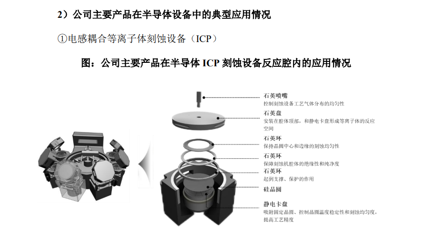 公司主要产品为硅、石英、碳化硅和氧化铝陶瓷等设备零部件产品,以及熔射再生、阳极氧化和精密清洗等表面处理服务。