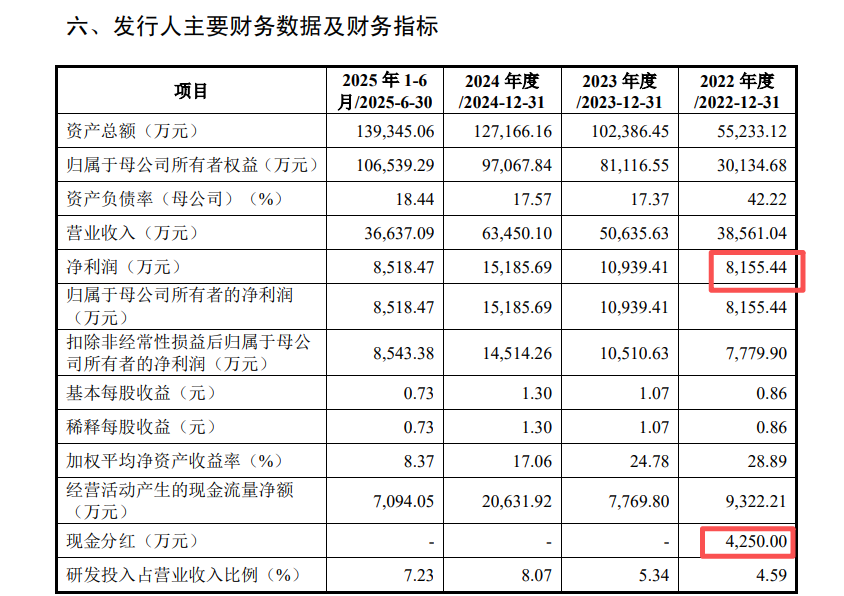 财务数据显示,2022年—2024年以及2025年上半年(以下简称“报告期”),公司实现营业收入分别约为3.86亿元、5.06亿元、6.35亿元及3.66亿元;对应实现归属净利润分别约为8162.16万元、1.08亿元、1.52亿元及8619.6万元。