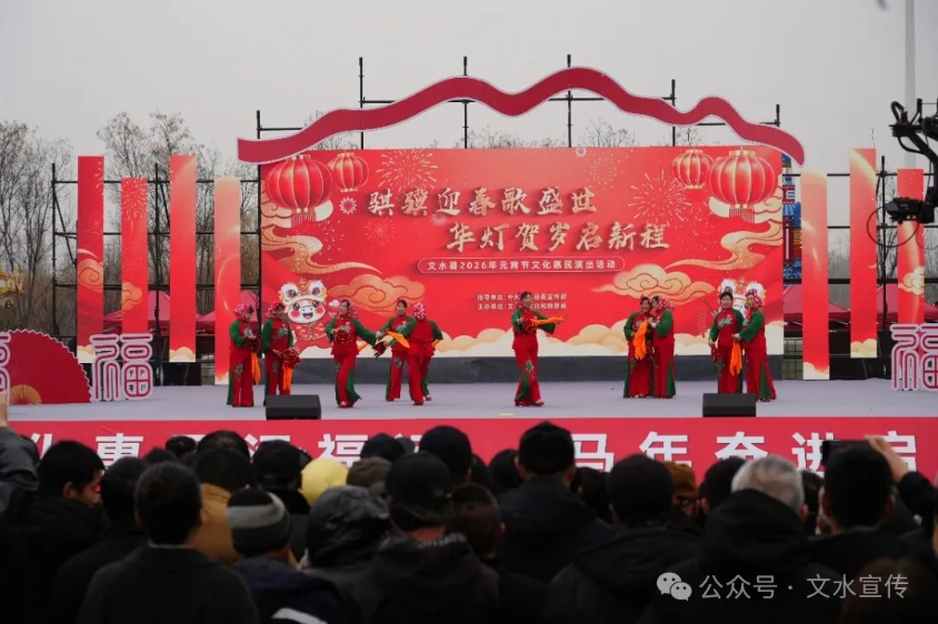 为丰富群众节日精神文化生活,营造欢乐祥和的节日氛围,3月2日(农历正月十四),“骐骥迎春歌盛世·华灯贺岁启新程”文水县2026年文化惠民演出在滨河公园启幕。副县长张雪娟和县委宣传部、县文旅局、县文联、武则天纪念馆等单位负责同志到场观看。