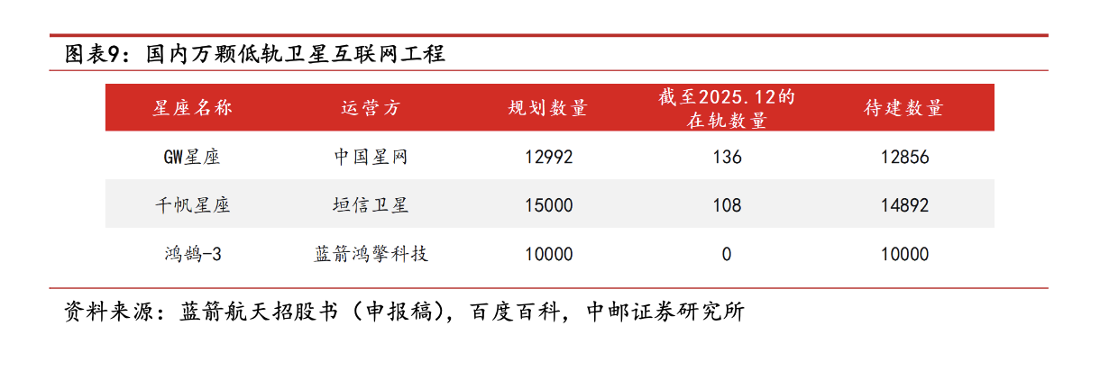 上述两大星座将在2024-2035年间分阶段部署近2.8万颗卫星,未来7-10年需700-800枚单发运力不低于18吨的运载火箭。