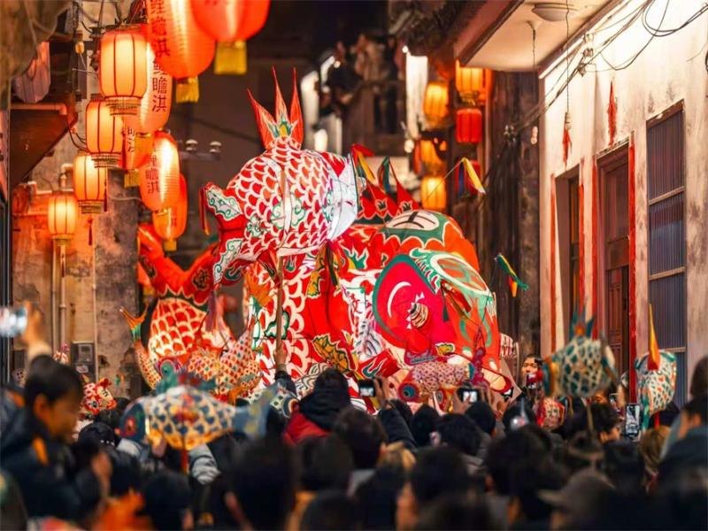 最典型的案例是“民宿+非遗工坊”模式。以徽州古城和瞻淇村的鱼灯为例,过去村民只是拿一点表演补贴,今年则引导游客从“看客”变“学徒”:游客住在村里民宿,白天由村里的老手艺人带着他们亲手扎鱼灯、画鱼灯,晚上再举着自己做的灯参与巡游。这样一来,村民凭手艺直接收费,教一个游客扎鱼灯的收入远超单纯的表演补贴;民宿也有了特色体验项目,实现“手艺变收益、老屋变课堂”。