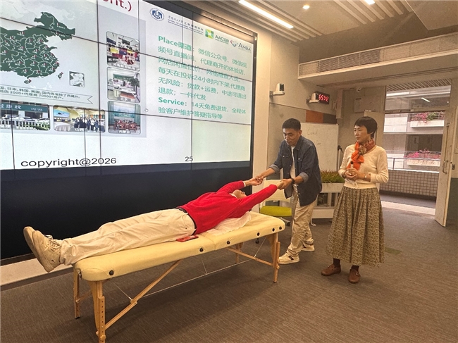 理论之外,课堂设置了沉浸式体验环节。学生们亲手触摸8种天然木珠填充物,观察灯泡在枕套上擦拭消除静电的演示,排队体验枕头高度调节。从2到18公分的自由调节、可做颈椎牵引的多功能设计,让抽象的产品卖点变成了直观的感受。