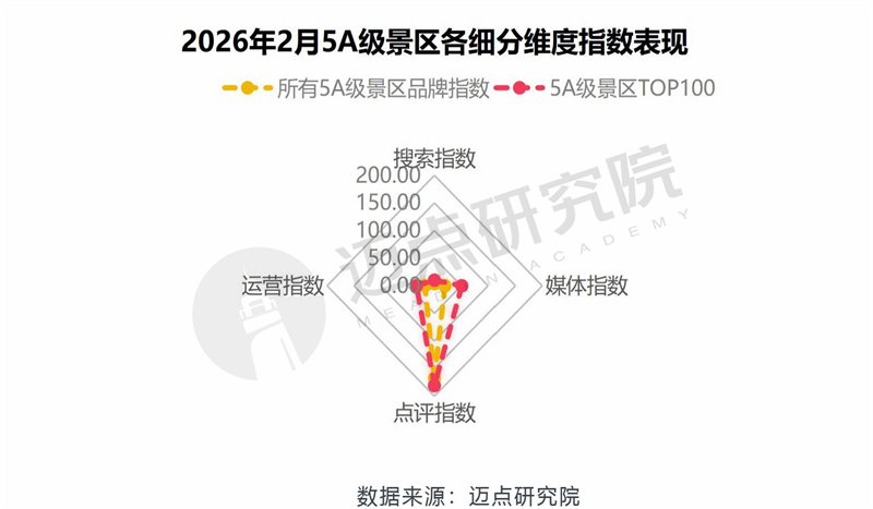“2026年2月5A级景区品牌传播力100强榜单”数据来源于迈点品牌指数MBI,根据2月迈点品牌指数MBI的358家景区数据汇总统计而成。具体说明如下: