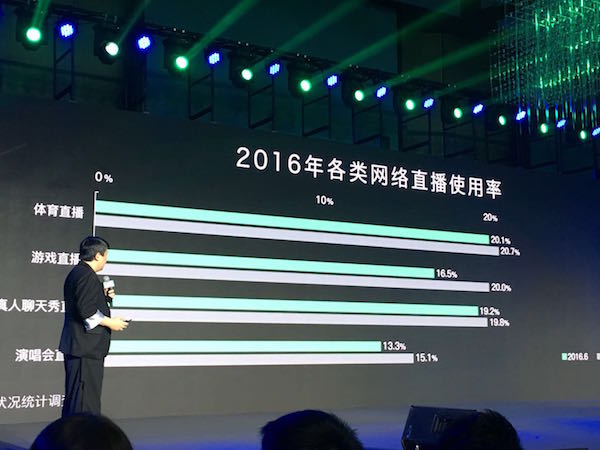 从2016年开始,我们确实看到了一些行业的应用,比如直播+体育,这是试图打通体育这个细分产业链条的一种做法。但是直播+体育有两个门槛,第一个门槛对投入要求挺高,比如原来中央直播赛事的时候,有十几个机位,另外还有成本更高的是对于主播的要求,我们以前看电视直播的时候,解说员说错了或者怎么样,用户也没有办法跟他互动,今天的直播都配备着弹幕,如果主播的功力不够深厚,他会下不了台,因此对主播的要求很高。这个行业产生了门槛,就会产生了机会,我个人比较看好直播+体育,但是现在一个是机位,另外还有赛事版权的购买,小平台是玩不了的,这些有非常高的要求。