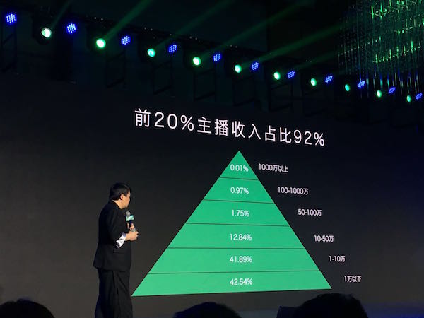 从另外一个角度来说,前8000名主播占据的收入是这样的一个数字,差不多占了总收入的80%。