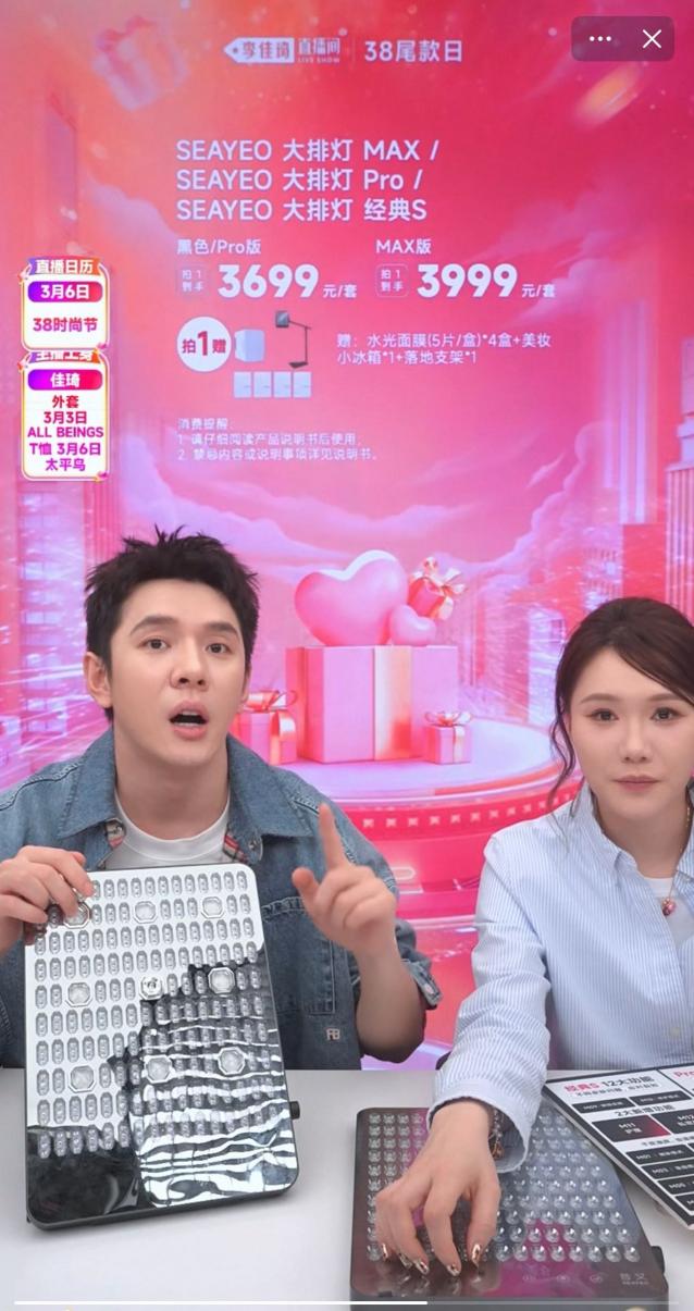 家用美容科技品类成为38大促的消费新热点。消费者对护肤的需求从基础保湿向功效型、精准化护理进阶。以李佳琦直播间为例,脱毛仪、大排灯、美容仪等居家美容仪器产品,在预售阶段GMV同比增长明显,承接了消费者对专业级护肤的日常化、便捷化需求。这一趋势与行业数据形成呼应,行业报告显示,2025 年中国家用美容仪市场规模预计突破 600 亿元,居家便捷护理成为女性自我投资的重要选择。